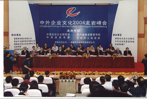 由中国企业文化研究会与中共福建省委宣传部、中共龙岩市委、龙岩市人民政府联合主办,福建省企业文化协会、中共龙岩市委宣传部承办的“国际化进程中的中国企业文化———中外企业文化2004龙岩峰会”,11月13—15日在福建省龙岩市举行。